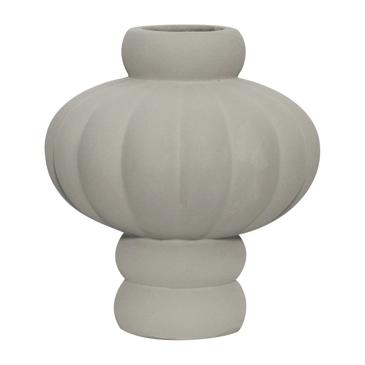 Med sit unikke, bløde og curvede design bringer Balloon vasen en sjælfuld dimension ind i ethvert rum. Den håndlavede finish giver hvert stykke en ganske særlig karakter, hvor små variationer gør den til én af de slags objekter, du ikke bare ejer, men værdsætter. Den sandede grå farve er både subtil og sofistikeret – den komplementerer effektivt både lysere og mørkere farvetoner, og giver et beroligende udtryk, der kan forvandle selv den mest almindelige indretning til en oase af stil og ro.