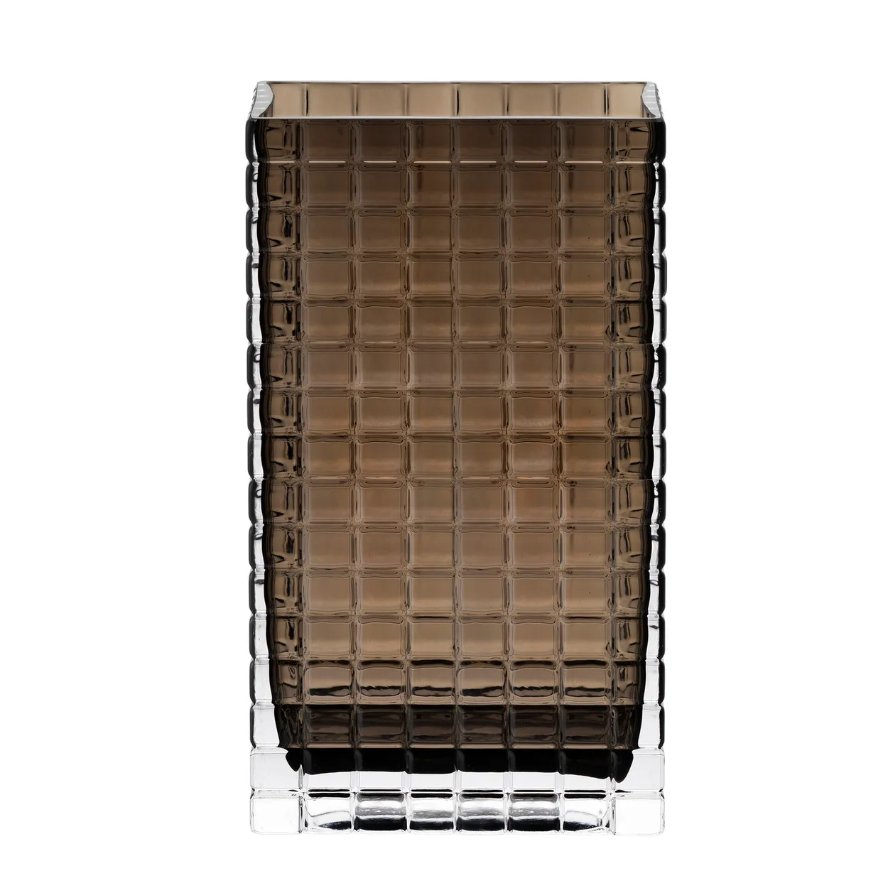 Materialet, røgfarvet glas, er ikke blot en fryd for øjet; det skaber også en levende og dynamisk effekt, når lyset rammer overfladen. Vasen fanger og reflekterer lyset på en måde, der skaber en følelse af rummelighed og dybde, hvilket gør det til en perfekt adgang til både naturligt og kunstigt lys i dit hjem. Forestil dig, hvordan den ser ud i skæret fra stearinlys på en hyggelig aften, hvor glasoverfladen skinner og tilføjer en varm glød til hyggen.